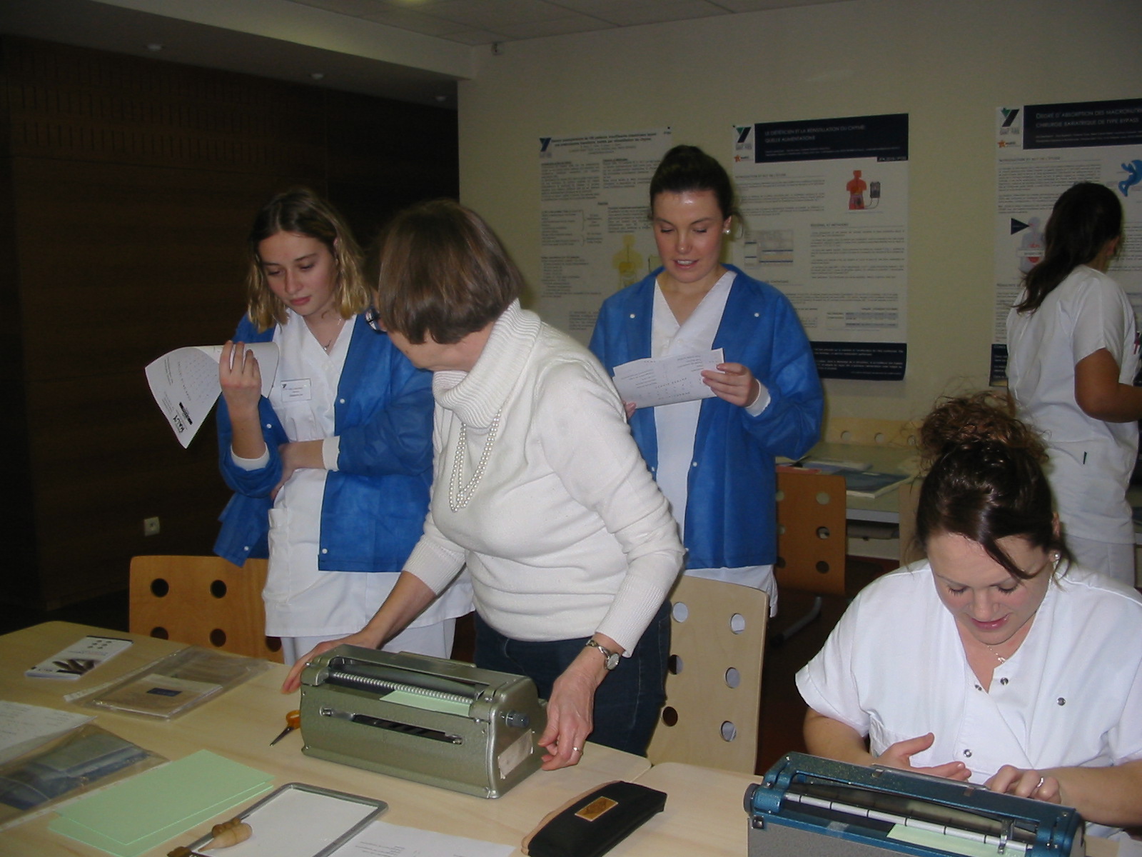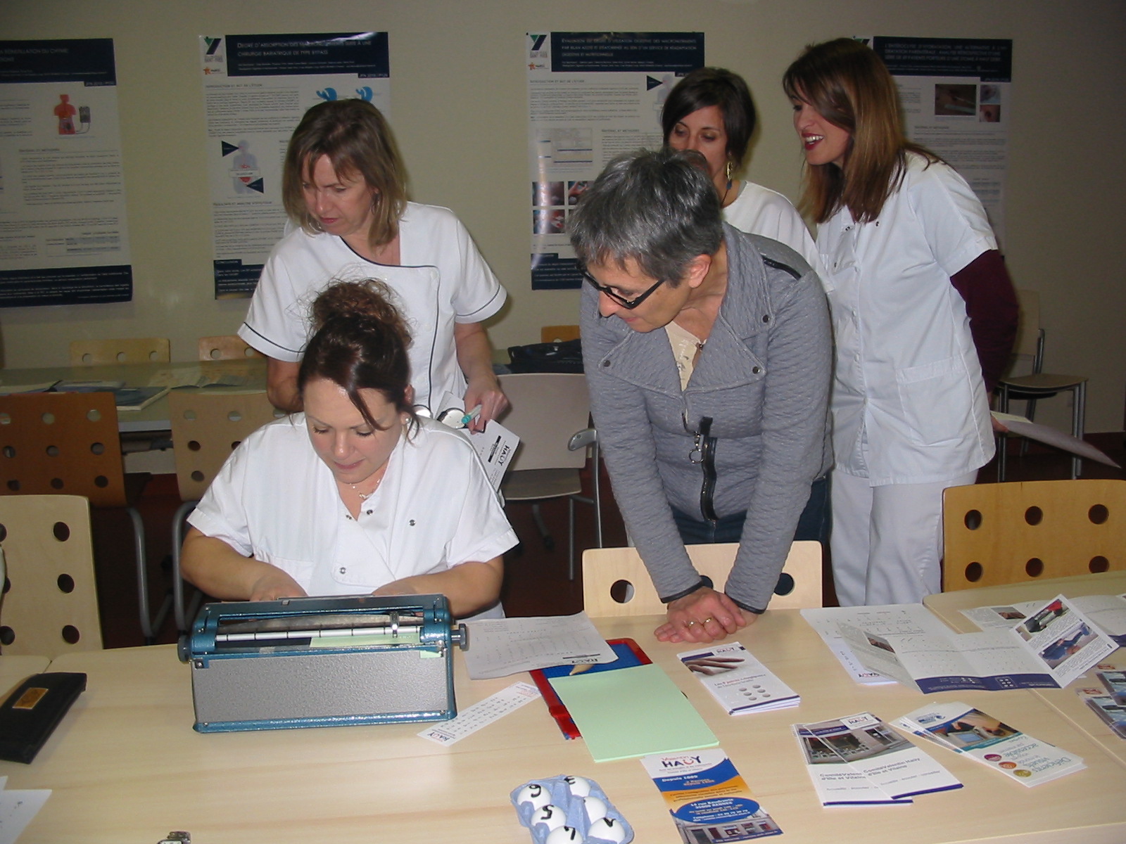 Pendant une heure, des représentants de l’association, ont initié quelques uns des salariés de la clinique, à l’apprentissage du braille sous forme d’ateliers.